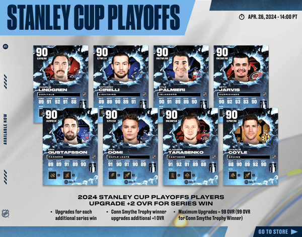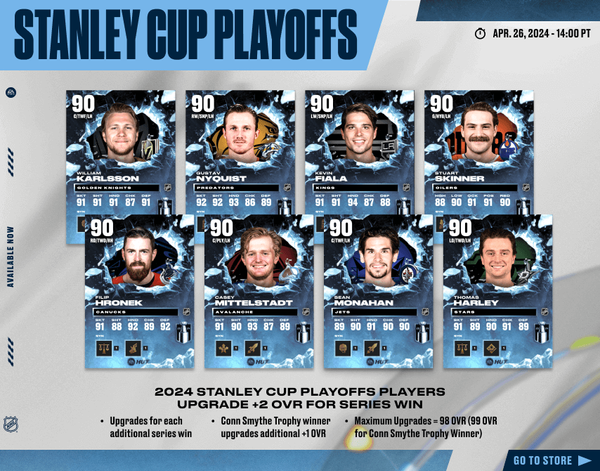 Happy Friday, HUT Fans! Today begins the Stanley Cup Playoffs event. Also releasing are the latest Live Moments, Transactions, Milestones and Elites along with a Gallery of Greats item for the 25th anniversary of The Great One's final NHL game.