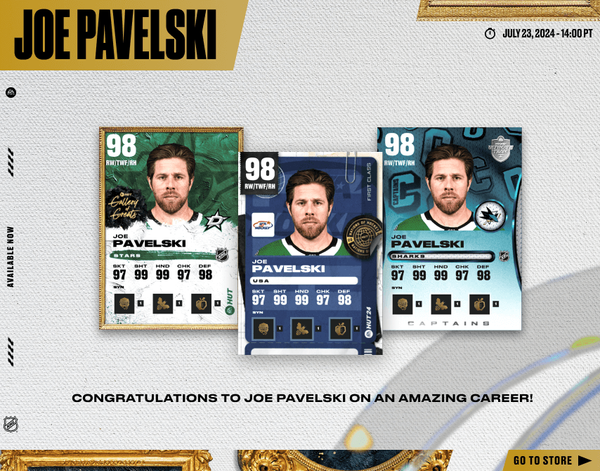 What's up, HUT Fans?! For Wednesdays content we've got new NHL 94 and Gallery of Greats additions. We're also honoring the career of Joe Pavelski after his recent retirement announcement. There are 2 new HUT Champs reward sets and the latest TOTW.