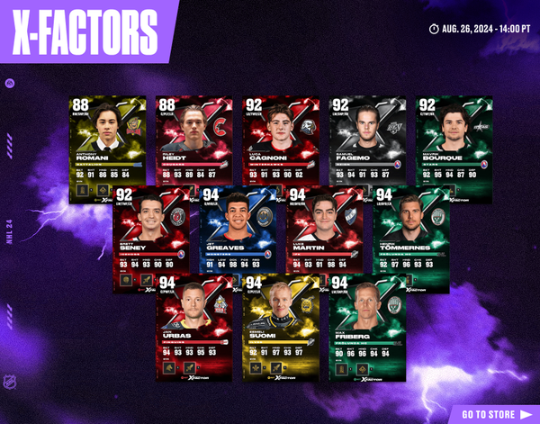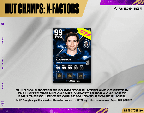 Hey, HUT Community! Starting off this week's content we have a batch of new X-Factors. These should come in handy for the HUT Champs, X-Factors Competitive Season. No qualification collectible is required for your chance at a 99 XF Adam Lowry! We've also got some new Style Icons additions. Aliaksei Protas gets a 91 Pre-Season item earnable through HUT Moments. New weekly objectives are available for Pre-Season versions of Palmieri (94) and Rust (96). Good luck!