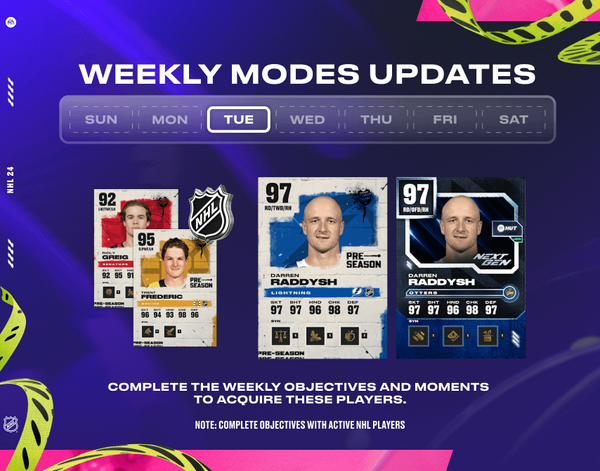 What's up, HUT Fans?! For today's content, we've got new 99 Elites, and Headliners. There's a mix of 99 and 98 Style Icons as well. There are new objectives for earning a 97 (NG and PS) Raddysh and a 95 (PS) Trent Frederic. There's also a 92 (PS) Ridly Grieg rewarded through Moments.