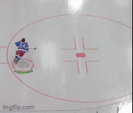 3. Finally, here's green - activley skating AWAY from the shooter as he scores