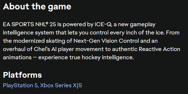 I'm sure EA wants to keep selling hockey games, and while you can argue people still playing on old gen should have seen this coming, many will find out too late that their hype for NHL 25 will be lessened by the fact that they need to buy a new console to be able to play. Some might need more than a month's heads up to be able to buy both a console and the game.