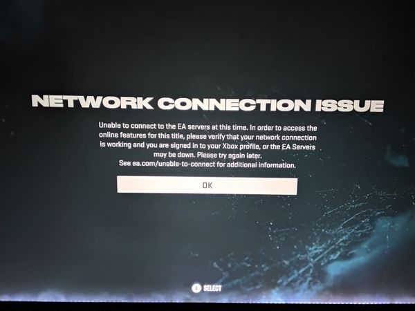 All my other xbox games work online just fine, no network connection issues, only when I play NHL 25 I see it.. so sounds like an EA problem... so what can be done to fix this cuz I spend $100 on this game and I wanna play it. soo lets go how can this be fixed and BTW yes I restarted my routers, logged in and out of profiles, restarted the console .. and still got the "network connection issue" message.
