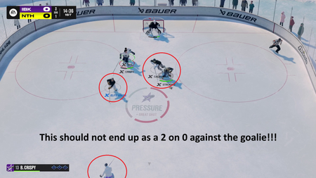 How can you in any world think this should be a 2 on 0? There is a defenseman back. Should this defenseman not play defense? Should this defenseman stay where they are? I get you like to comment and come to EA's defense (Hero), but this is completely ludicrous.