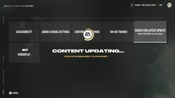 • When I log into HUT in NHL26 both on ps5 & Xbox accounts the prompt(see pictures) pops up about ”content updating, update is required to proceed”. This pops up every time I open the store in hut and when I start up to play a match. It wasn’t like that before S.2 update for HUT on my Xbox. And also it says in the settings that there’s an new version available(see pictures), but it doesn’t update, it just says the same after trying to update. Hopefully this helps with the pictures.