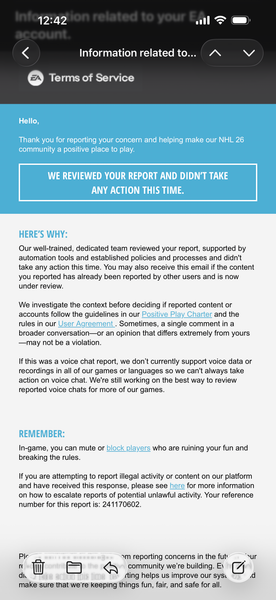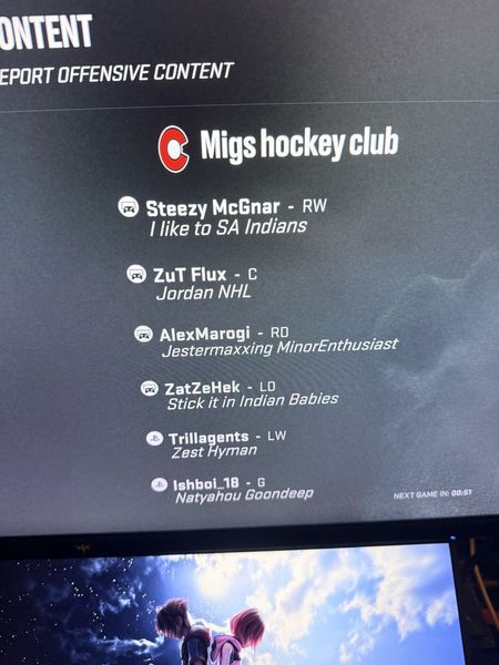 Ea's "well-trained dedicated team" said that some of these names were perfectly ok! I cant even write those names in these forums I bet, I would be instantly banned but found a full team of guys who discriminate against Indians and they get no ban. Best part is a buddy of mine got a 72 hour ban for a name "Granny getting apples" which if you know hockey you know what an apple is and he is an older guy so we all call him granny. This company is a joke and I am sure they will delete this post.