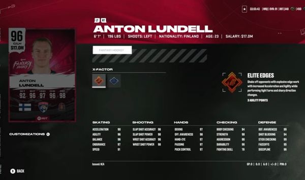 He got got a fantasy card last year also and at 96 overall he had 95 acceleration and 94 speed so it makes no sense for it to be only 90 acceleration and 91 speed this year he’s one of the best skaters in the NHL and isn’t fantasy supposed to be one of the best cards in the game so there’s one reason for his skating stats to be this bad from last year game in NHL 25