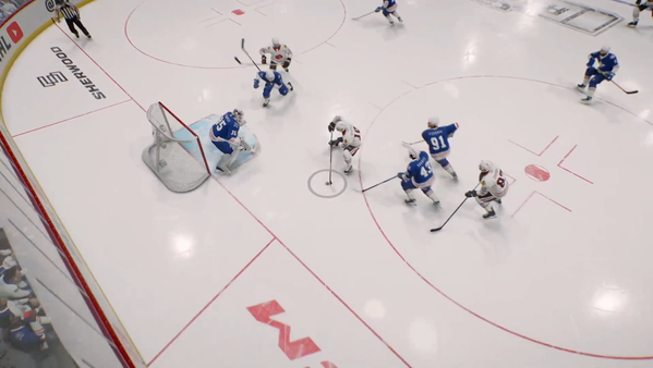 You're absolutely positive that in this screenshot, right in front of the net, Faber isn't having his stick clip through his body? You're absolutely positive that this is a normal direction for his stick to go when someone presses R1 to poke the puck? Up and through the body, to the opposite direction of the puck/stick you would logically poke otherwise?
