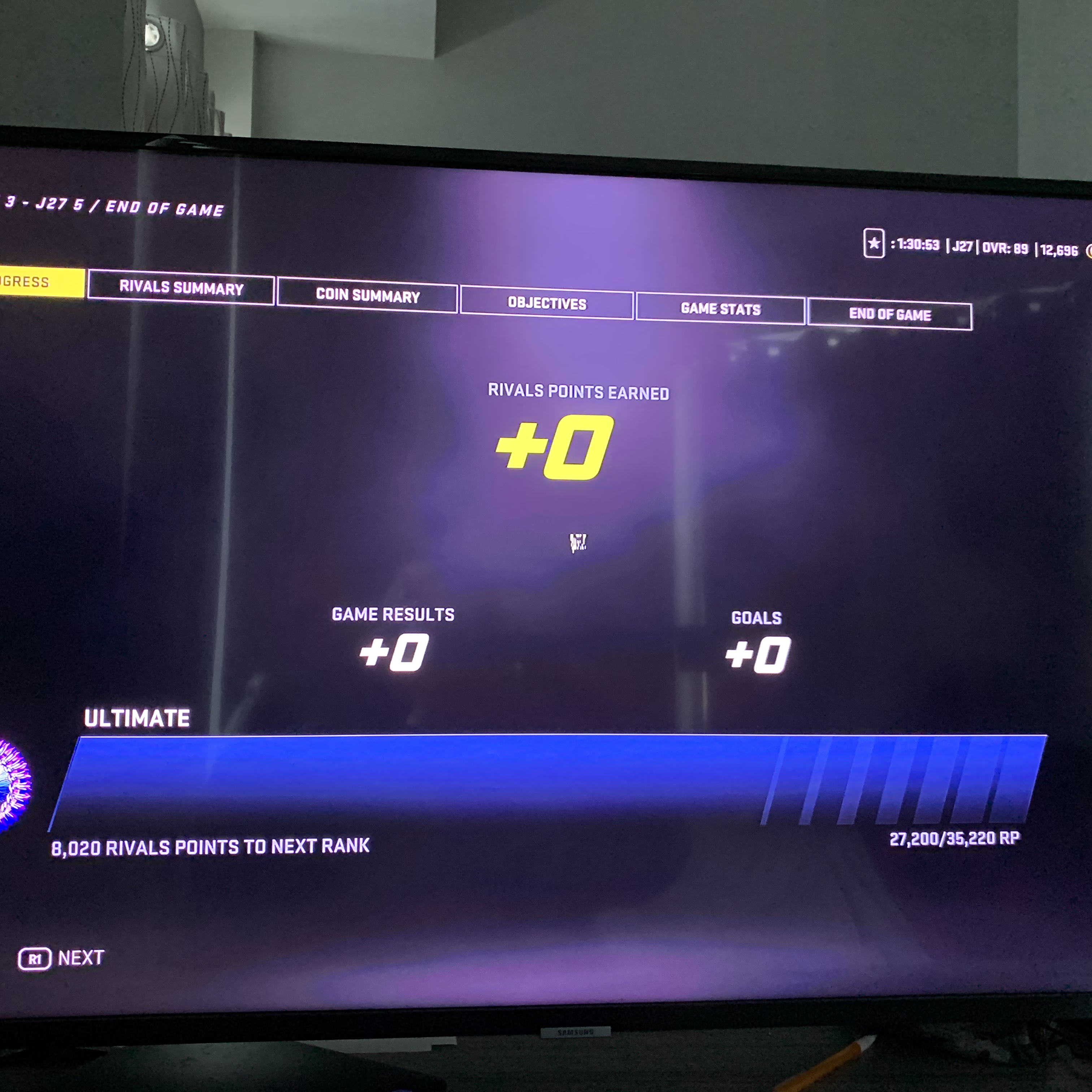Hello, everyone. Please keep in mind there is a weekly 50 game cap for receiving points in Rivals. This includes any HUT Champions games you play. More information can be found here.