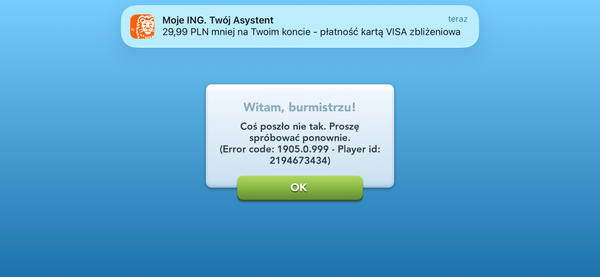 Mam problem z SimCity Buildity, a mianowicie kupiłem dodatkowy karnet burmistrza-kasa z konta została pobrana a po wszystkim wyświetlił się komunikat ERROR… i do dziś dnia nie przydzieliło mi dodatkowego bonusa - jeden bonus kupowałem dwukrotnie i za drugim razem dopiero przyznano mi go. Nie zamierzam inwestować podwójnie w dodatkowe bonusy. Stąd moje pytanie co zrobić aby uznali transakcje.