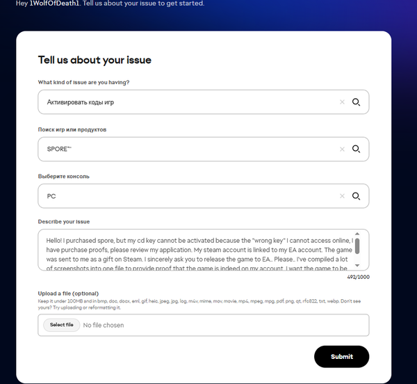 Это единственная площадка, где я хоть как-то могу связаться с поддержкой. В остальном, всё требует либо ВПН, либо прочие сторонние утилиты, чтобы я мог как-то оставить заявку. Я хочу получить продукт на аккаунт ЕА, чтобы потом купить на него DLC. Я не хочу оставаться в дураках и покупать игру заново за те же деньги, только в другом лаунчере. Ну, правда.. Помогите, пожалуйста.