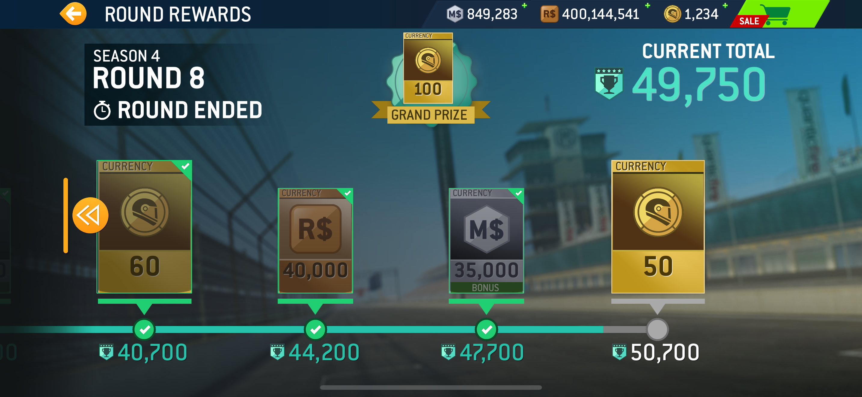 Issue: I completed Season 4, Round 8 at 100%. I completed all the events and got all the possible VP points for that round. However, I still fell short (950 points exactly) of reaching the last reward of 50 gold.