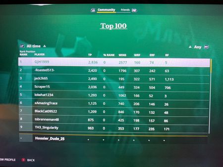 Hoosier_Dude_25Seasoned Newcomer9 months agoWhy were global leaderboard stats erased? EA Sports, why did you erase the global leaderboard stats on April 1? At first, I thought it was an April Fool's prank. But, the problem has not been fixed. We all pay good money to play this exce...Show More