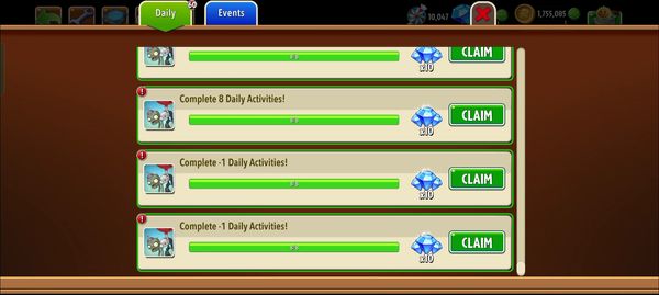 Completed 8 daily tasks yesterday and can’t collect the 20x gem reward yesterday or today. The claim button is still there and it won’t go away! I want those gems 🥲
