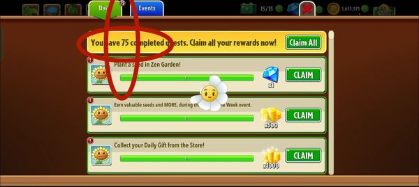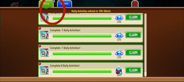 Old bugs... Look rarely playing pvz2 game.. before claim, do all quest daily activities, actually 10 or 11 quest..