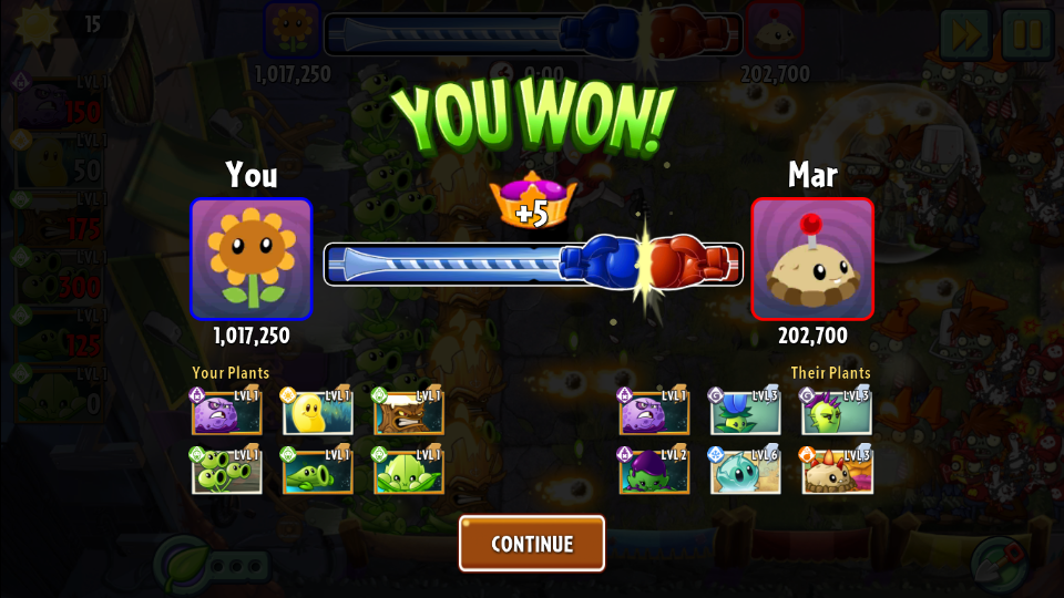 - @ImNoob2009 I wish I have the option on my iPhones or know a way to drop my plant level. - I have 4 active level 1 profiles, 2 are complete and 2 are not. Sadly the oldest one is the one with some plants I accidentally upgraded to level 2. This was the one I played first but failed to break 8M within 500 crowns. - Below is the incomplete level 1 profile I played and have had a lucky RNG to break 8M.