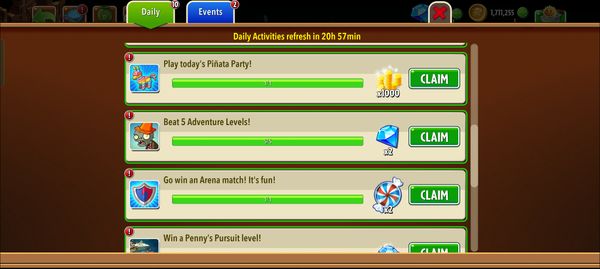 Within the last couple of weeks, my game has become the buggiest it has ever been. I haven't been able to play the piñata parties at all— it always shows the “replay” button, even though I haven't played in two weeks. There is no ability to earn arena gauntlets or penny's pursuit energy. There are frequent freezes. Oh, and when I went to the “help” button, it sent me to a 404 - not found.