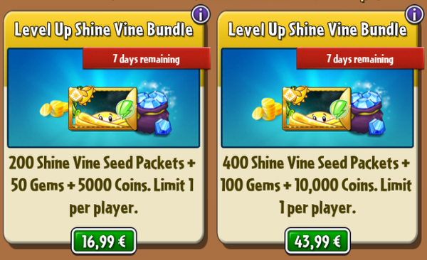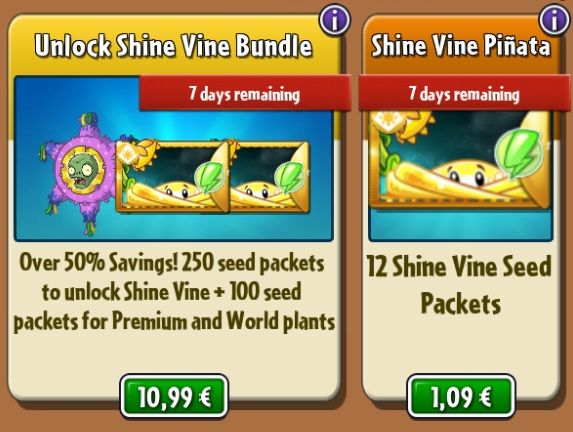 Yep, I have different offers in the store depending on whether I already have Shine Vine unlocked or not. I have to force-close the app and enter on my unused profile to make this offer appear. It's really funny...the price per SV seed is completely different.