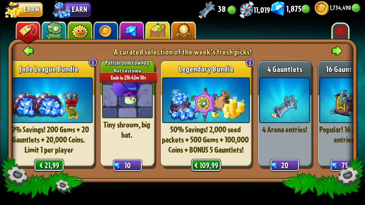 yes I had to run out to get Google credit lol it's the end of the month and I didn't have any in my debit card. but yes I got what I think is every plant except hot date!!! I also got that cowboy puff Shroom costume. I almost didn't look at the costume section I'm glad I did. I thought I had all the ones they offer for sale in the store. I guess I didn't.