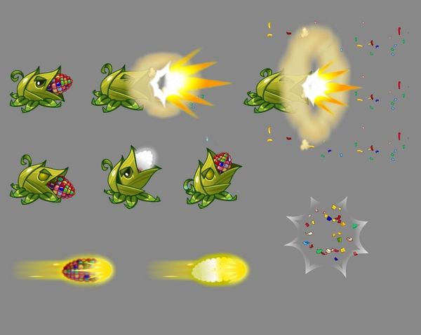 📂📌 Projectile dispersal isn't a very explored ability in PvZ, at least I see it more frequently in some mods where certain plants don't follow a linear firing/throwing pattern. But, for me, that's one of the things that differentiates it in terms of ability; it would be cool to see more of that in PvZ 3, using Pomegranate as a base, considering that one of the best examples we have of it is one of the plants from the Chinese version that fires projectiles in a cone-shaped area, dealing more damage when a target is nearby, like Pam does in Brawl Stars.