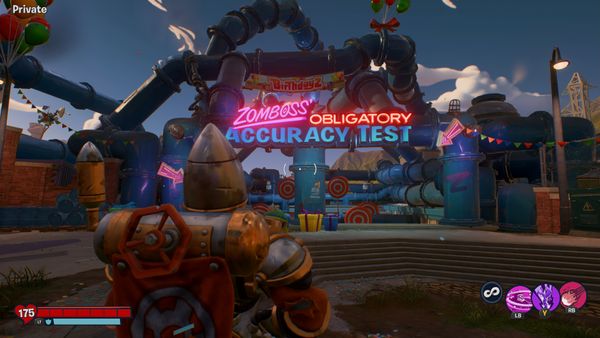 Giddy Park is the main hub in this game. There is a Plant area (Dave Manor), a Zombie area (Zomboss HQ) and Giddy Park itself, where you can ride on rides and battle enemies. It contains lots of features which are available in the Plant and Zombie area, such as: