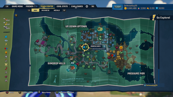 While you are located in a specific free-roam region, you have access to a map of that region is automatically unlocked in your menu, which include where most of the items and characters are located. You can also check your progress of how much of your free-roam regions are complete and see what medals you have collected and which ones you still need in the menu, along with your overall medal collection progress. If you want to check your progress in your menu, enter the menu in your respective region and navigate to the section that displays "Town Center", "Mount Steep" or "Weirding Woods", depending on which region you are in to check this information. More places and items will be shown on the map as you progress through your free-roam regions.