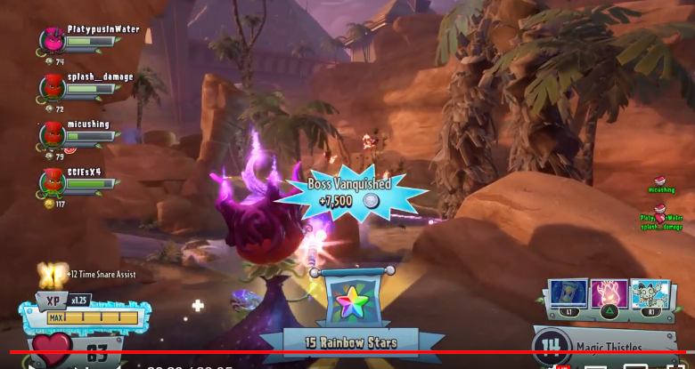 4. Play normal with all Roses. This one is really challenging. We always on the edge. We use a lot jinx to increase damage, a lot of time snare acting like a goop (stop fire attack, and control distance), a lot of healing arcane (to get extra 20 HP, healing other, temporary invincible to run away to pot, then plant heal flowers or goop pot). Time was almost running out (~1 min remaining), but we finally nail it. YESSS!!!