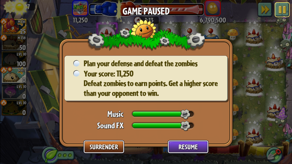 • @tueeyes I am encountering that right now. I played a solid 12 hours just to catch up with a cheater who racked up 707 points in less than 45 minutes. My reward? That same player came on after I had built a modest lead of 45 points and in a matter of 30 minutes had blown past me while retaking a 225 point lead. I am currently at what I consider an impressive 1246 points - after giving over most of my spare "play time" to Pvz2. The cheater is at 1707 but hasn't been on since Wednesday - which means he/she averaged an unbelievable 500+ points per day (always while only staying on for under 2 hours each time).