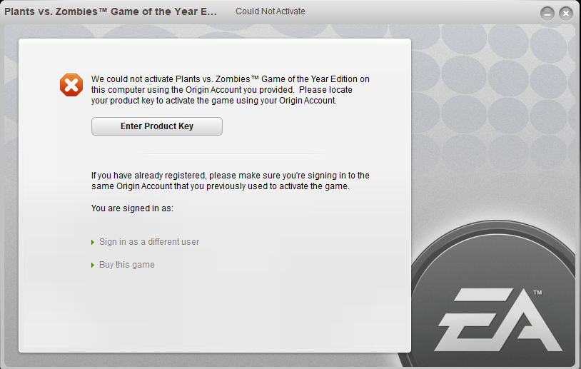 So I bought Pvz game on EA app and when I try to launch it shows a window with activation error or something. When I try to login down there nothing happens and when I try to redeem code activation it displays "error has occured". The last option is to buy game but it just shows up game's site.