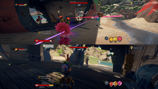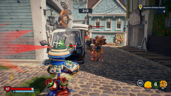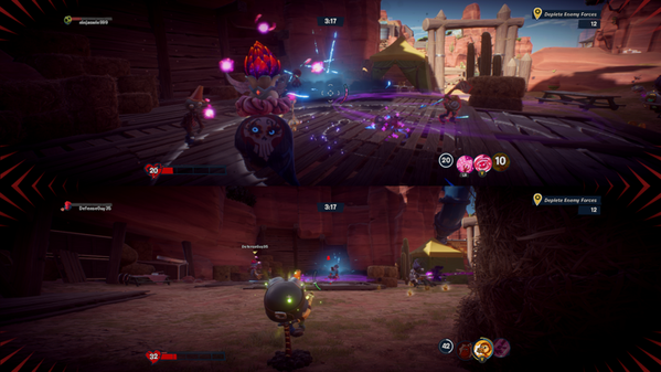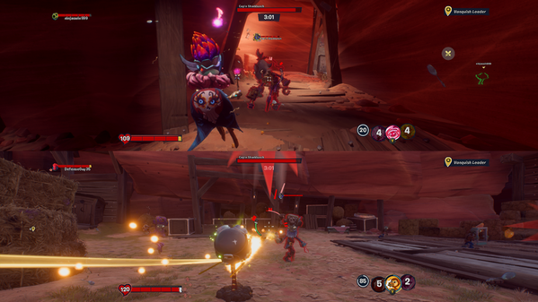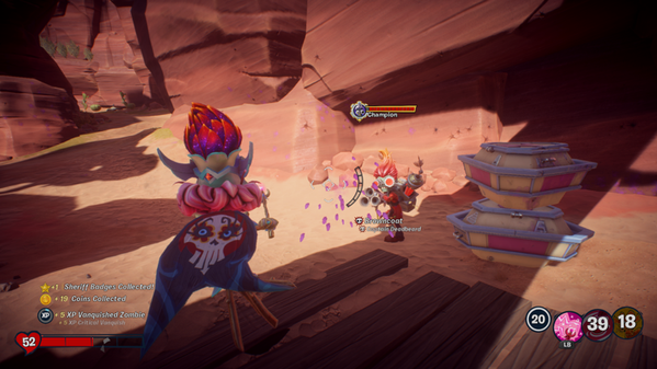 Champions are variants of enemies that have increased health and that have a special costume on, equivalent to one you could find in the Reward-O-Tron. They have the name Champion above their head to indicate that they have one. You can sometimes find a Champion variant, instead of its regular counterpart, around Plants Town Center or Mount Steep in place of a regular enemy. They also appear commonly in Battle Zones, so triggering them to appear is also an effective way to try and get them to appear. Sometimes, they are just part of the enemies that spawn throughout the Battle Zone, but other times they can appear as the Skirmisher or Leader. For this reason, simply triggering Battle Zones can be an effective way to fight them. Note that to get the Champion vanquishing medals, shared or direct vanquishes are fine.