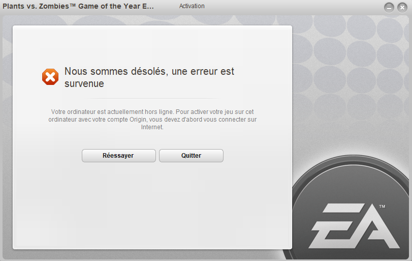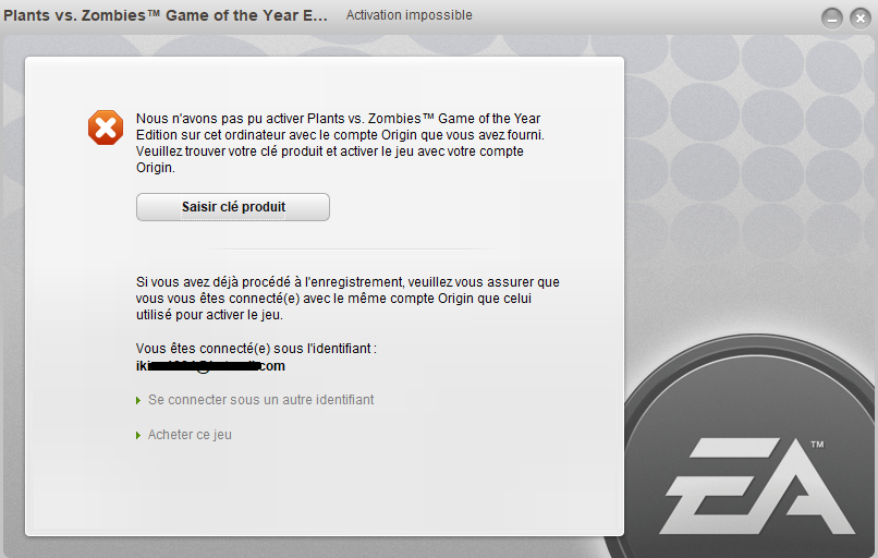 Bonjour ! J'ai récemment acheté le jeu "Plants Vs. Zombies", le premier et je ne peux y jouer en raison d'une réclamation d'une clé d'activation.