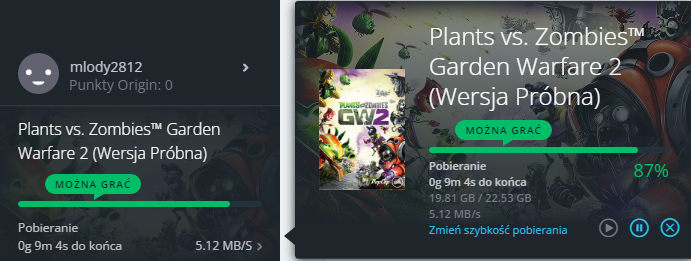 Parę lat temu kupiłem grę "plant vs zombies gw2" na początku nie działało, bo mój laptop to był złom. Teraz ją instaluję na bardzo dobrym sprzęcie. Gdy ją instaluję to mi pokazuje że jest w wersji próbnej, ale ja ją kupiłem w sklepie gdzie były gry na płyty. Nie wiem co teraz robić plis niech ktoś z EA lub ktoś inny mi powie co mam robić. W dodatku gdy klikam graj to mi nie działa. Nie wyświetla mi żadnego komunikatu tylko na chwilę (parę sekund) wyłącza mi origina znowu włącza jakby nic się niestało. Zarysowana płyta czy co? Wątpię bo ją wyciągałem ostatnio parę lat temu. Więc nie wiem proszę o szybką odpowiedź.