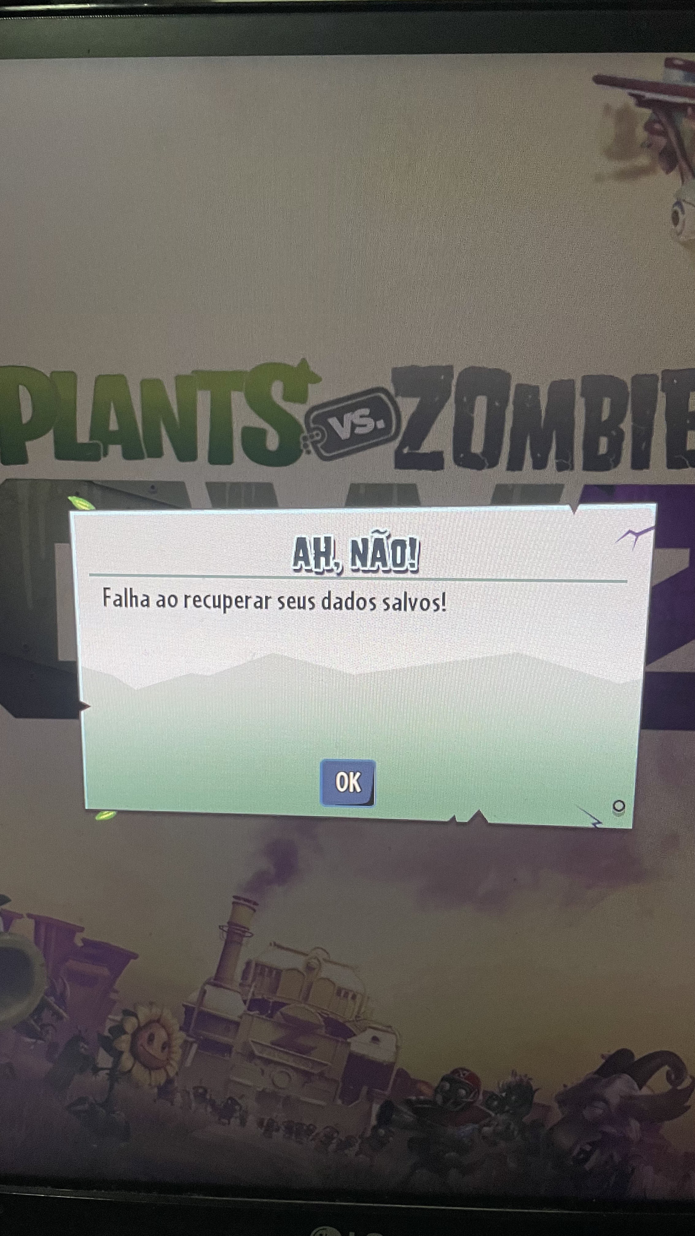 Estou tentando entrar no Jogo "Plantas VS Zombies 2" e esta aparecendo uma mensagem "Falha ao recuperar seus dados Salvos" e quando entrou no jogo perdi todas as conquistas e o jogo começou do zero.