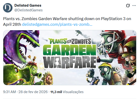 Plants vs Zombies Garden Warfare 1 will be shutdown on April 28, 2026 on PS3.
