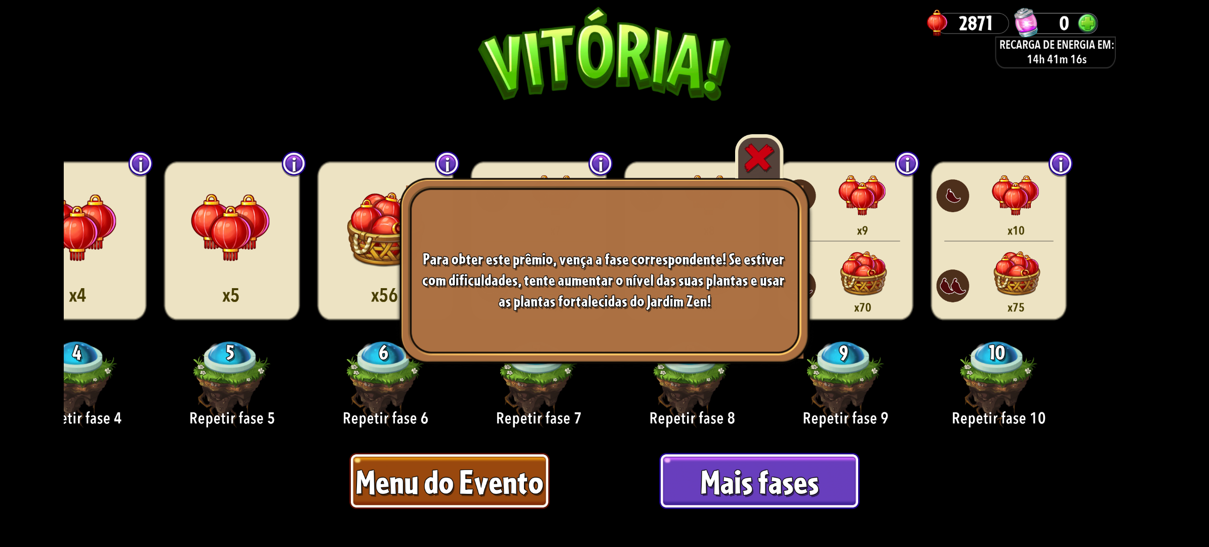 Por gentileza EA, coloque a fase em questão ou então ao pressionar no botão ele direciona ou pisca a fase em que o zumbi se encontra! Mas informações das fases também pode ter uma descrição de quais zumbis tem na fase!