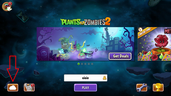 1. На старом устройстве запустите PVZ2, в главном меню нажмите кнопку облака.