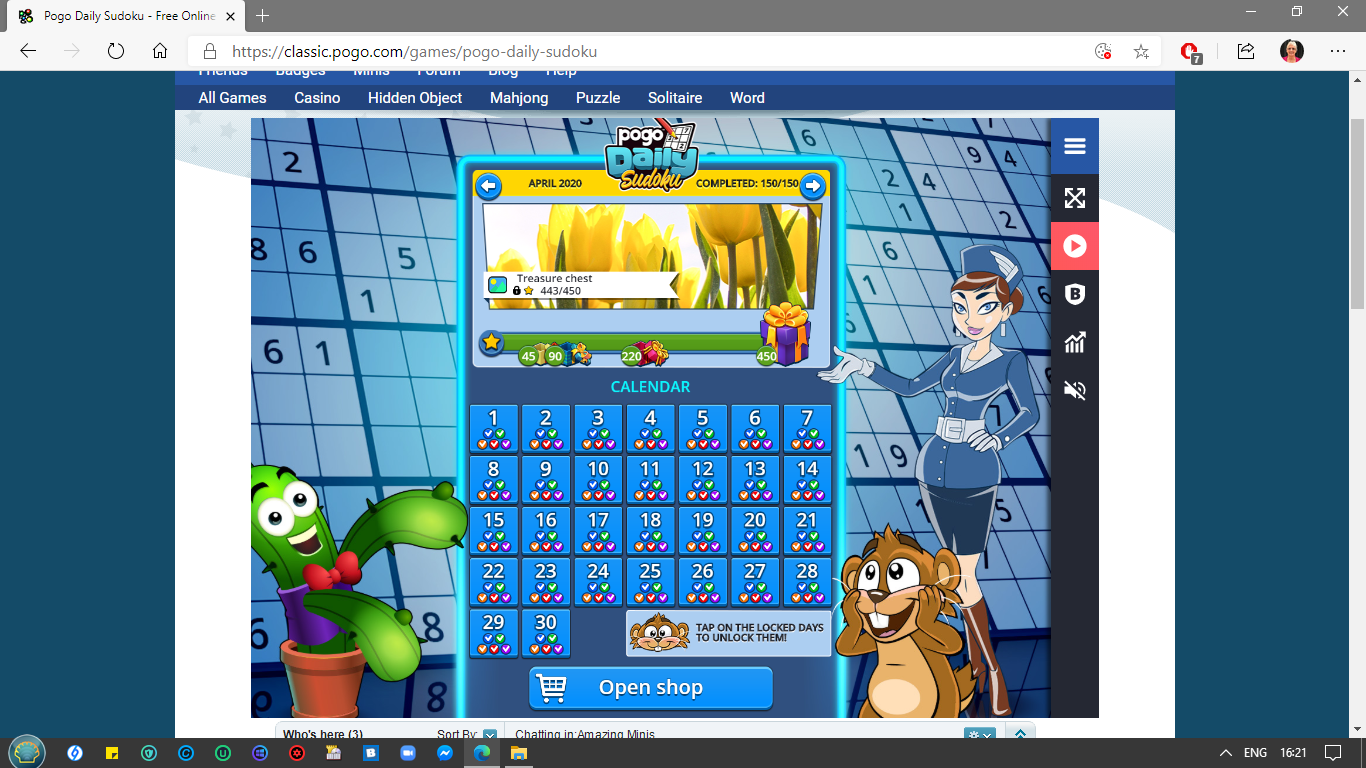 also when u go back next day it starts with the day thats imcomplete so i cant miss any stars..it cant be the same 3 mths following cause tomorrow when may ends its will be short again....its really odd....another thing i have noticed is altho i do a day perfectly it only gives me either 1 or 2 stars then i have to go back and do again...something else i have also noticed is that the 2 green squares we get are not always there...im sure theres something wrong with my game...