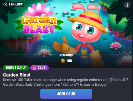 The Garden Blast Daily Challenge needs a level with orange blocks in order to meet the challenge criteria. Could you double-check if the challenge updates to log your progress after you remove Tulip blocks on levels with orange blocks in them?