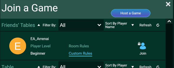 My friend and I could not find each other in gin or canasta if we had a private table so I spoke to EA and they had me run the trouble shooter. I did have a couple of things turned off that need to be allowed for these games and my friend did finally find my private table in gin but she could NOT find me in canasta so that one is still broken even after all my repair steps on my part so that needs to be fixed.