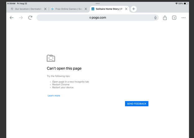 After reviewing all your postings with the screenshots with myself, EA_Lanna and others, I see you are using an Apple device and use Safari or Chrome with a white screen appearing. Additionally, from the picture you provide below, I can assume you are playing Pogo on an iPad or iPhone.