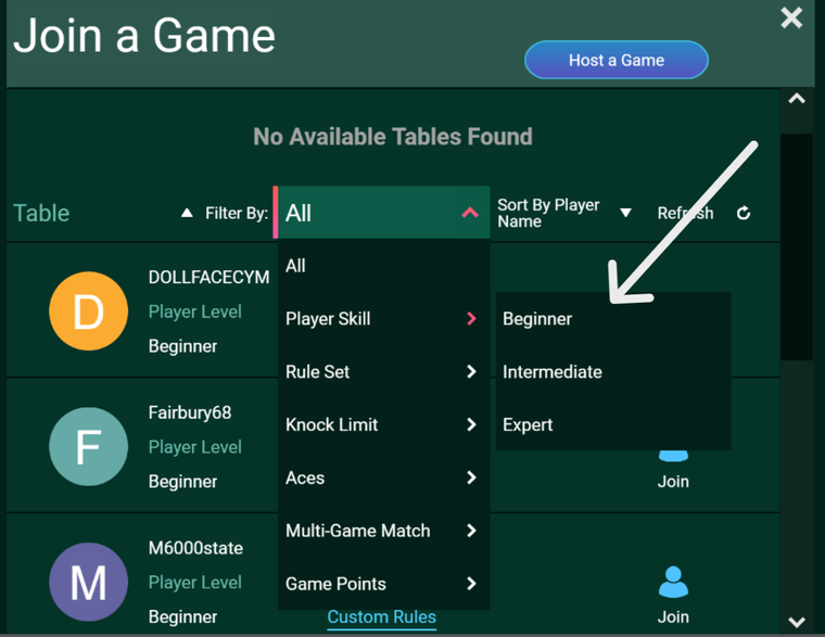 Join a Game: Find other players with the skill set you desire - Beginner, Intermediate or Expert