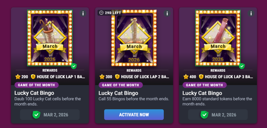I tried the Game of the month Lucky Cat Bingo Challenges "House of Luck Badges":