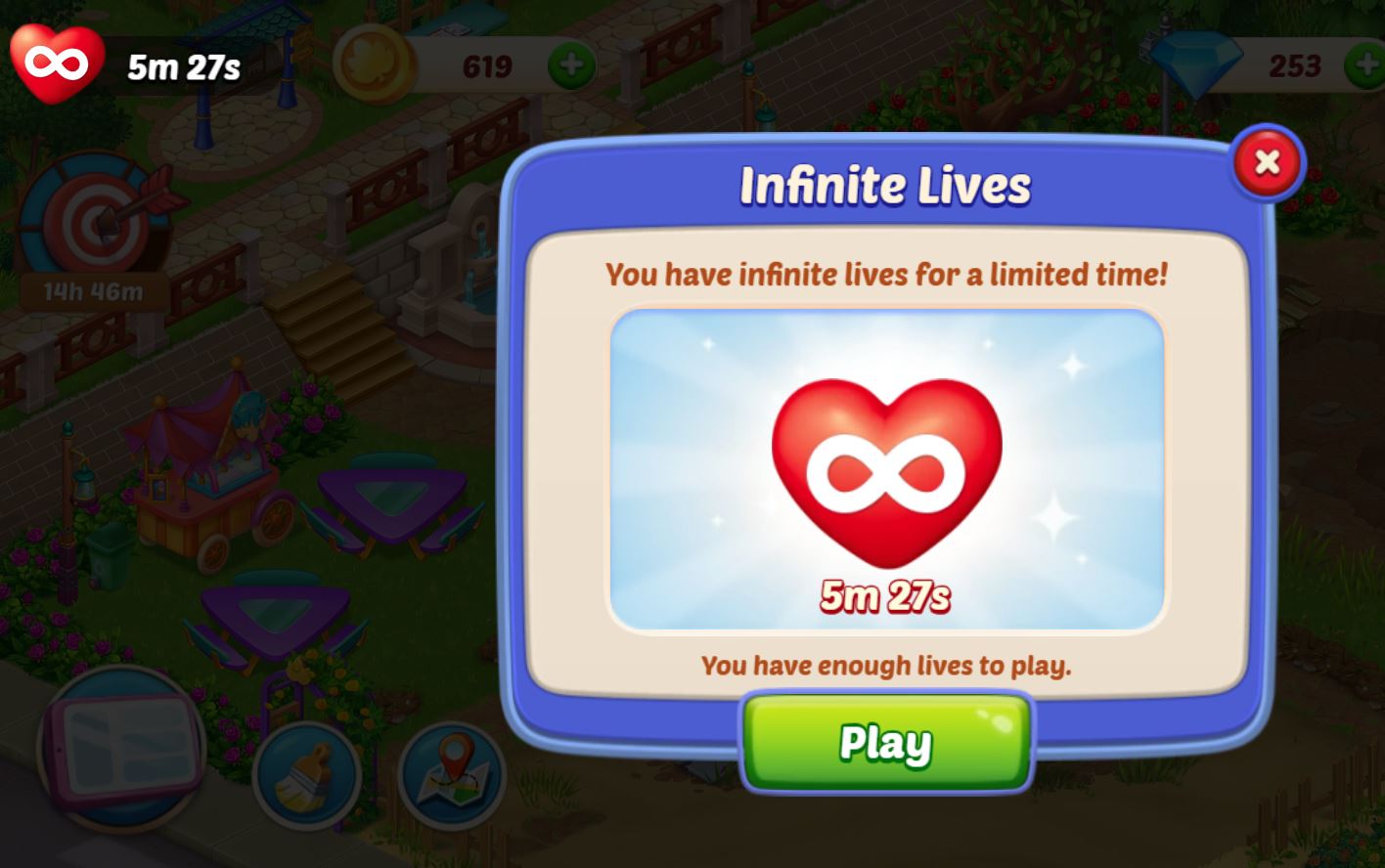 I have infinity lives for 20 minutes after a few losses it now loops me to infinity, choose a booster and then back to the infinity popup. I can't play the game. Its frustrating when you pay for a site and the games don't work.