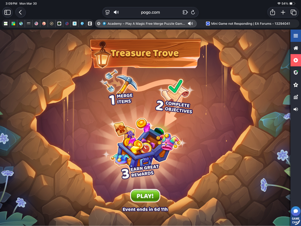 Ditto. I click on play and nothing happens. I can't even get into the regular play, it's just stuck on the treasure trove screen. Playing on Android/chrome