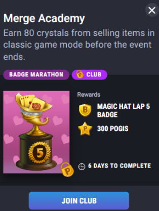 Activated the Merge Academy Challenge (earn 80 crystals).  Sold item for 101 crystals (large flower) which should have completed the challenge.  Only showed 1 crystal earned.  Went back later and sold another item for 80 crystals (again only showed 1 crystal earned).  Please fix.  Cannot activate other games in the challenge until this one is complete.  Thank you
