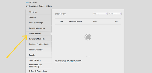 When the new page appears, click on Order History - a security alert will appear, and it will send you a code to the email address attached to your account.