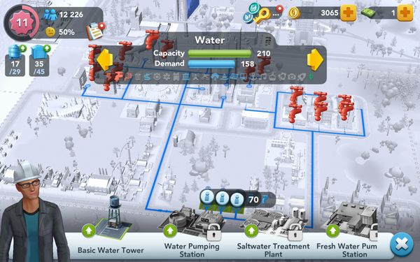 I am experiencing a water shortage in SimCity BuildIt even though my water capacity far exceeds demand. All roads are fully connected, and electricity is working normally.