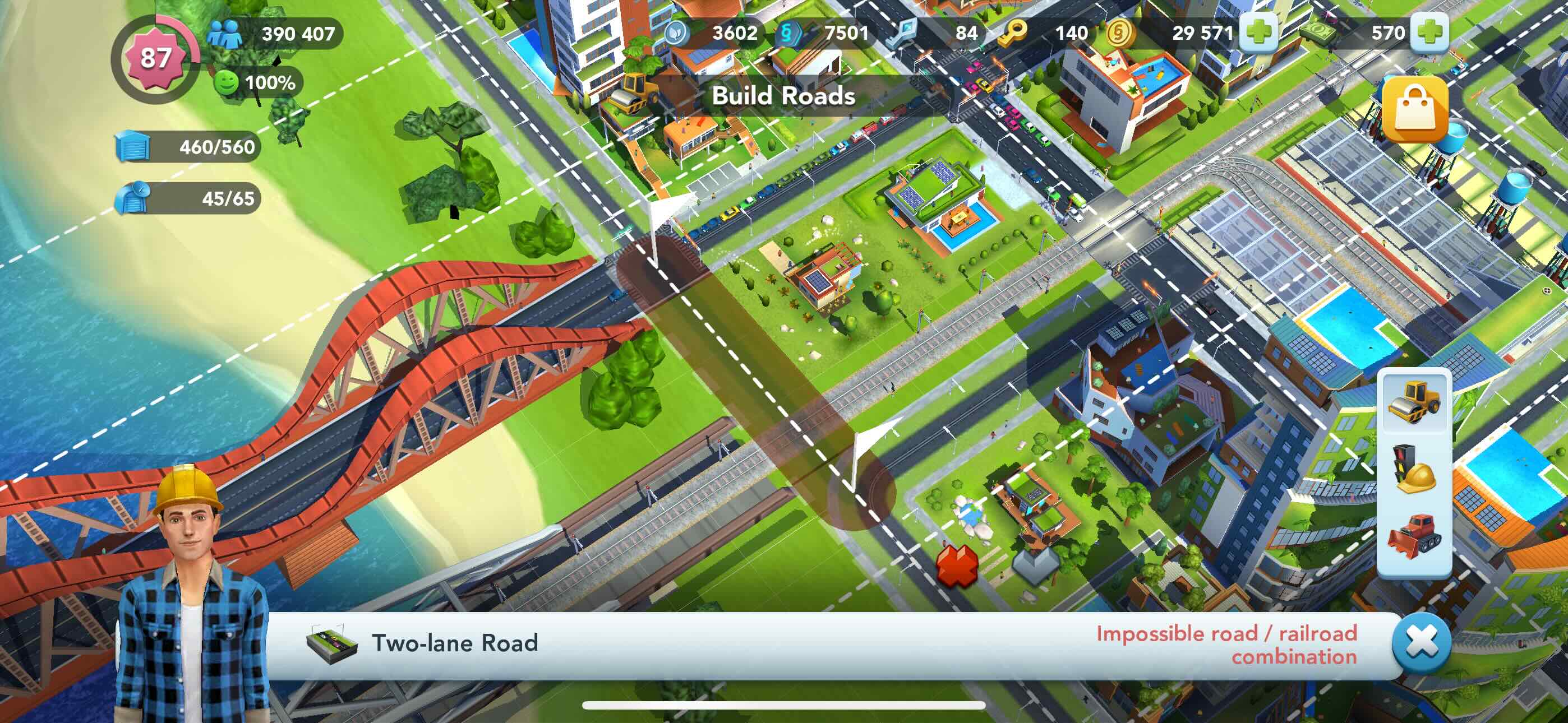 clear the area around the approaches to the bridges. delete the rail lines on the approaches to the bridges.