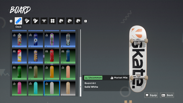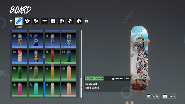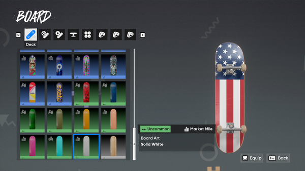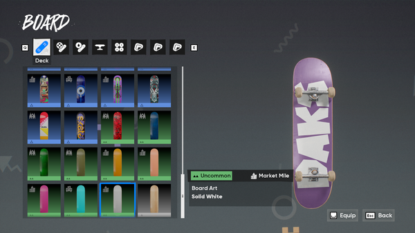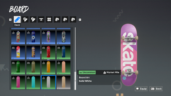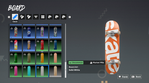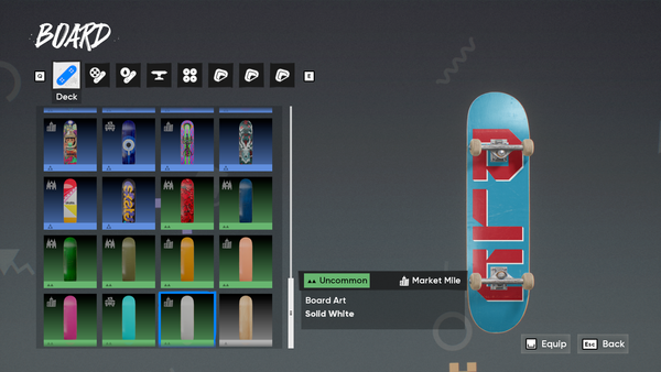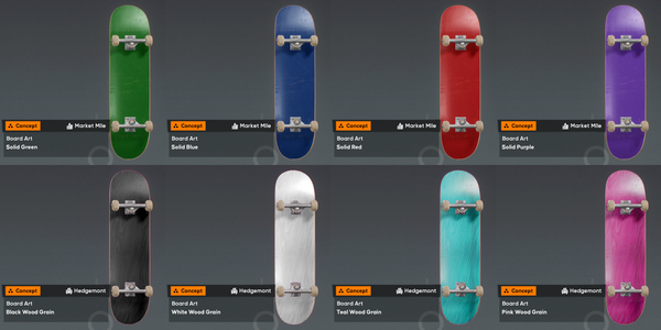 While working on the Rip Chip Shop, I started expanding the blank decks available in-game. There's an odd mix between Solid & Wood Grain Decks, and there's an opportunity to round out the catalogue If none are planned for the future. For the post, I only mirrored the existing decks that don't have a matching counterpart. The concept introduces 8 New "Board Arts".