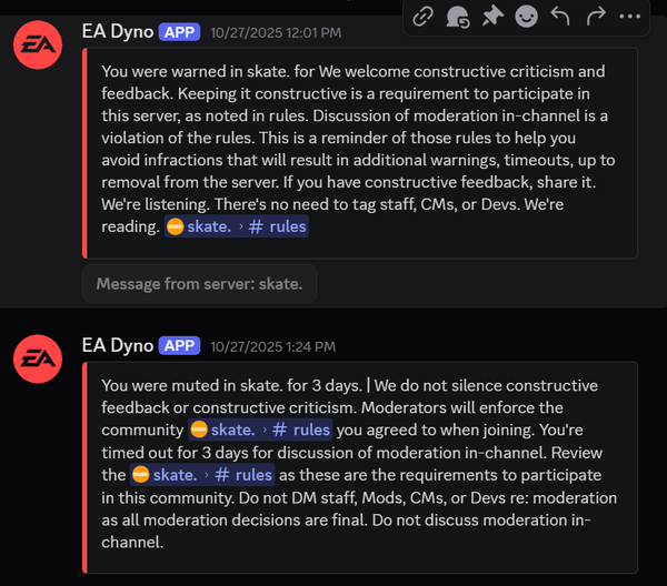 Funny how the first paragraph of the most recent weekly grind emphasizes multiple times that our feedback is being heard xD If you truly were banned just for criticism, that's messed up.